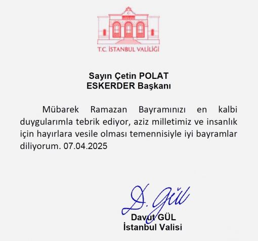 Vali Gül, Ramazan Bayramı dolayısıyla Dernek Başkanımız Çetin Polat'a hitaben gönderdiği mesajında şu ifadelere yer verdi: